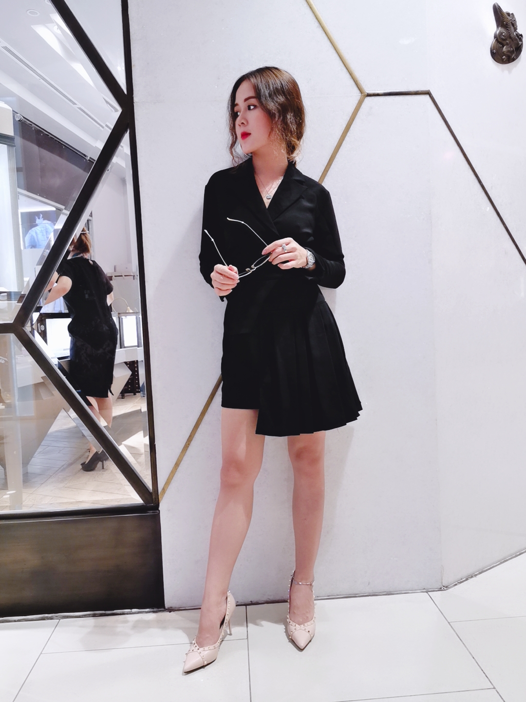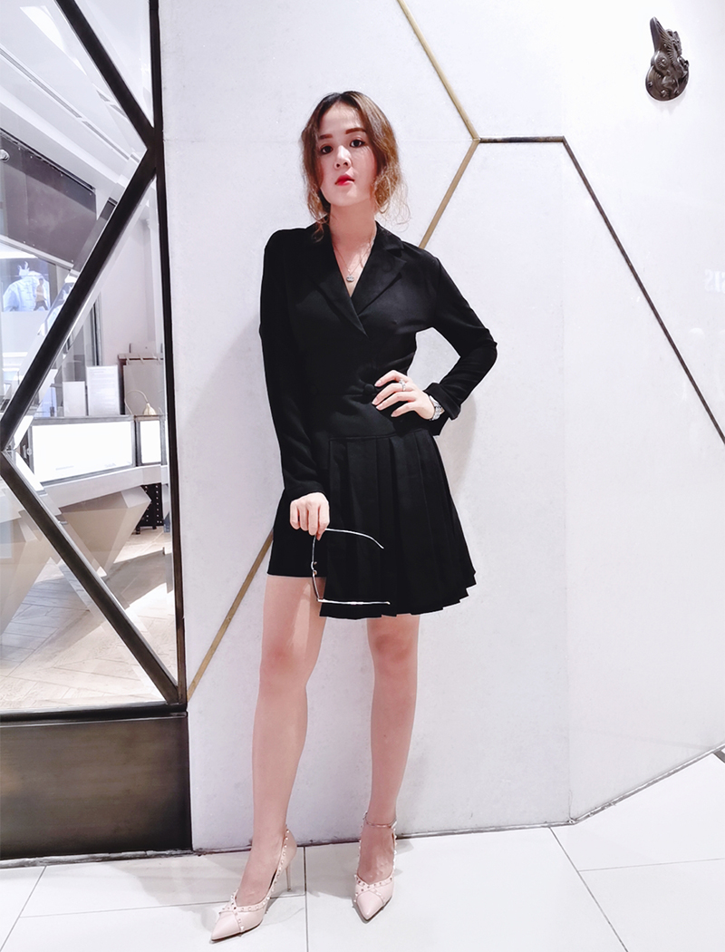 Sét áo váy kiểu vest tay dài váy xếp ly lệch